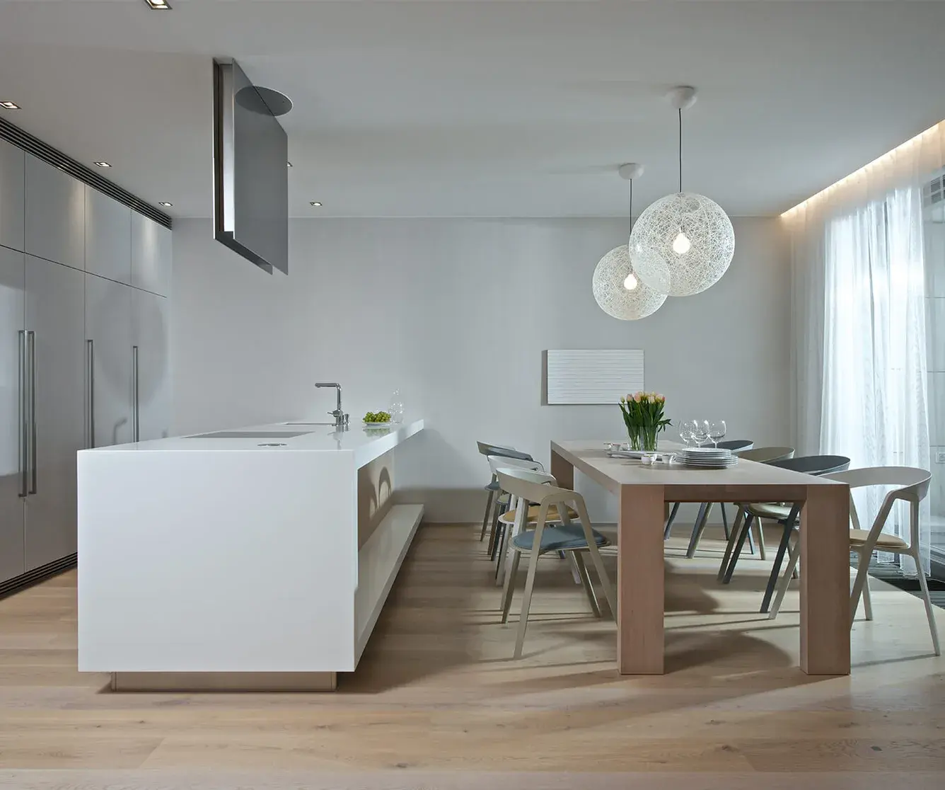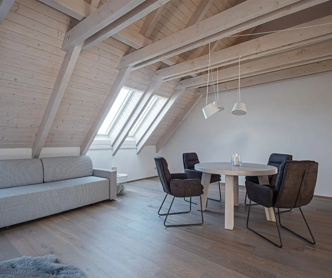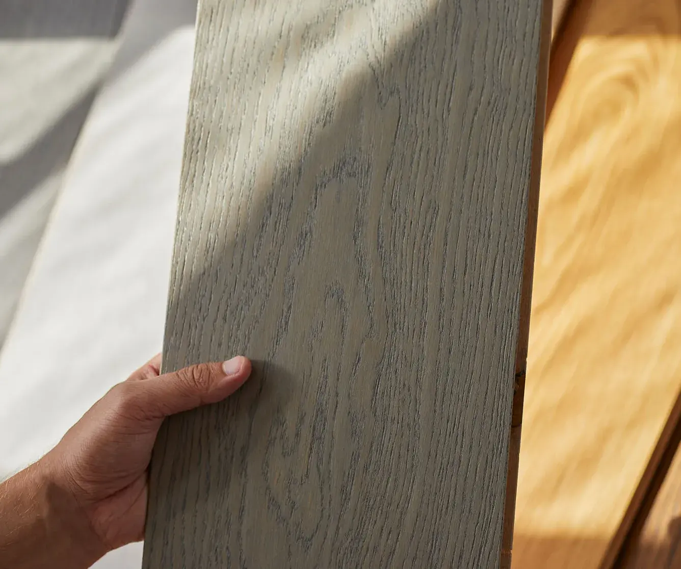 KOLEKCE SMOKE představuje okouzlující kombinaci šedé barvy a dřeva. Vytváří klidný a pohodový prostor pro sdílené okamžiky i soustředěnou práci. Tato kolekce se svým střídmým estetickým výrazem vyniká v průmyslových interiérech, jako jsou podkrovní prostory a komerční interiéry, kde exceluje svou praktičností. Šedé tóny dubového dřeva evokují pocit letitých, vyzrálých desek připomínající staré trámy vybledlé sluncem nebo dřevo vyplavené mořem. Barvy kolekce SMOKE jsme vyvinuli ve spolupráci s odborníky na přírodní oleje.